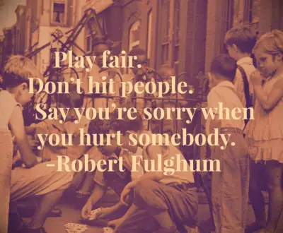 Žaisk mugę. Nepamirškite žmonių. Pasakyk, kad atsiprašau, kai ką nors įskaudini. - Robertas Fulghumas